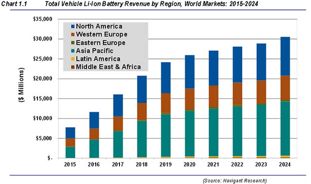 Os fabricantes automotivos globais continuam seus esforços para produzir mais veículos que utilizam drivetrains elétricos. A maioria dos OEMs introduziram veículo a bateria elétrico (BEV) e modelos híbridos plug-in (PHEV), quase todos utilizam baterias de íon de lítio para armazenamento de energia a bordo. Cada vez mais, os veículos elétricos híbridos (HEVs) estão começando a usar baterias de íon-lítio, em vez de níquel-hidreto metálico, e agora os veículos stop-start (SSVs) passaram, também, a adotar baterias Li-ion.