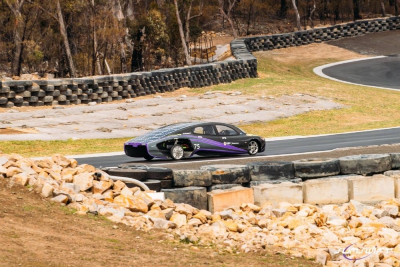 A velocidade máxima do carro solar australiano está limitada a 130 km, e os painéis solares montados no teto garantem uma autonomia de 800 km, contando com a ajuda da energia acumulada nas baterias.