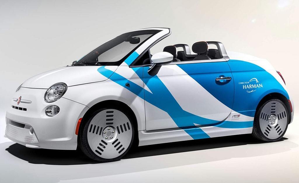 Tomando como ponto de partida o pequeno e acessível carro elétrico da Fiat, a Harman teve como objetivo criar um automóvel mais seguro, conectado e, sobretudo, ‘inteligente’. O resultado aparece nas imagens abaixo. Os especialistas da Harman International realizaram uma grande quantidade de modificações sobre o pequeno urbano italiano.