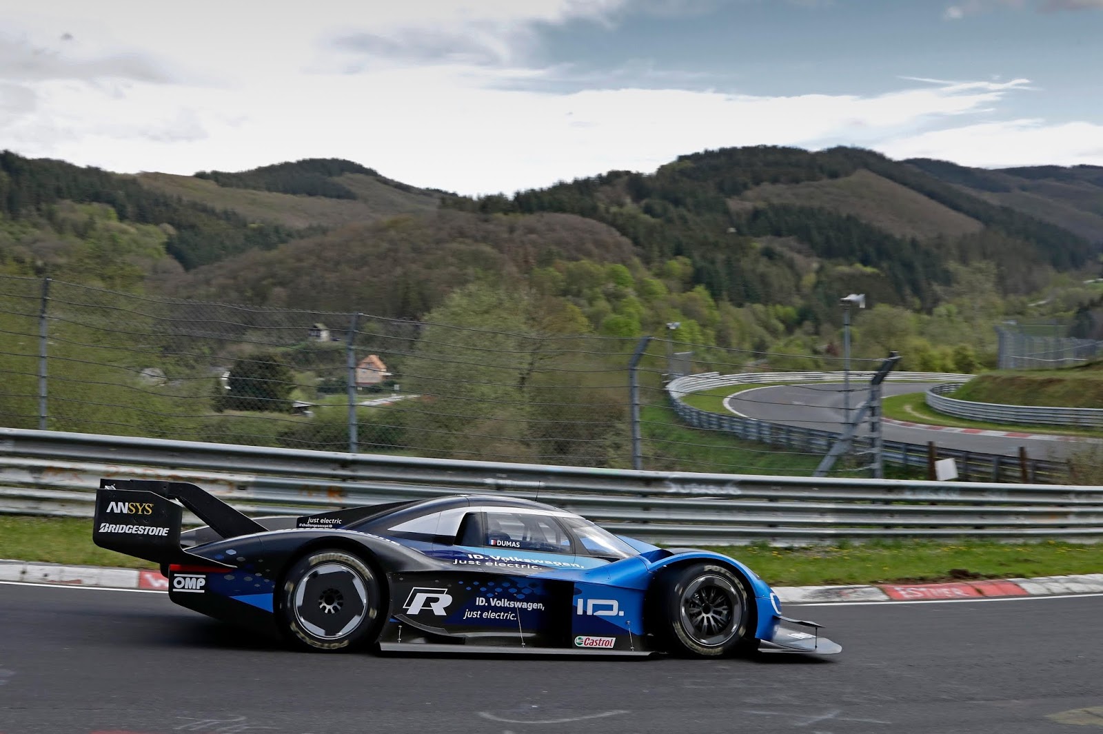A unidade elétrica de 500 kW do ID. R foi adaptada para as características de pista exclusivas de Nordschleife. Dois blocos de bateria de lítio-íon servem como armazenamento de energia a bordo do ID.