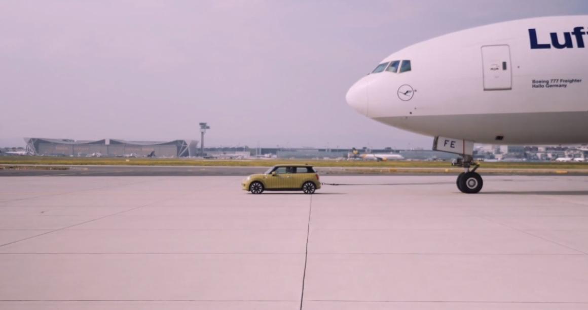 Postagem: Vídeo mostra elétrico Mini puxando Boeing 777