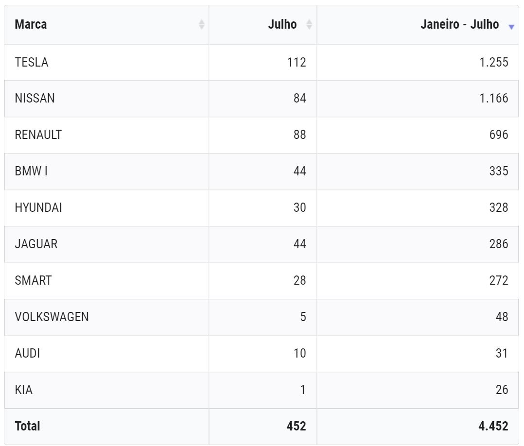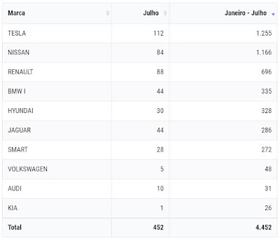 Este ano não está a ser exceção, com os elétricos a brilharem. Dos 21.791 carros matriculados até julho, muitos foram híbridos (que combinam um motor a combustão com um elétrico), nomeadamente plug-in, comprados por empresas que conseguem, assim, tirar partido de benefícios fiscais, mas destaca-se o fato de 4.452 veículos serem 100% elétricos.