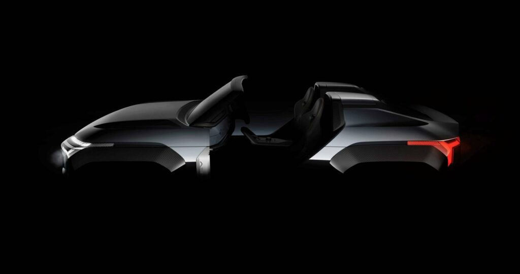 O primeiro, do qual só se tinha visto as ventoinhas da traseira, surge agora com a lateral a descoberto. A foto mostra que o protótipo não tem portas, tem um capô musculado, o mesmo se passando com as cavas das rodas, feitas em fibra de carbono. Faróis e farolins feitos em LED, exibindo o protótipo a nova linguagem de estilo da Mitsubishi.