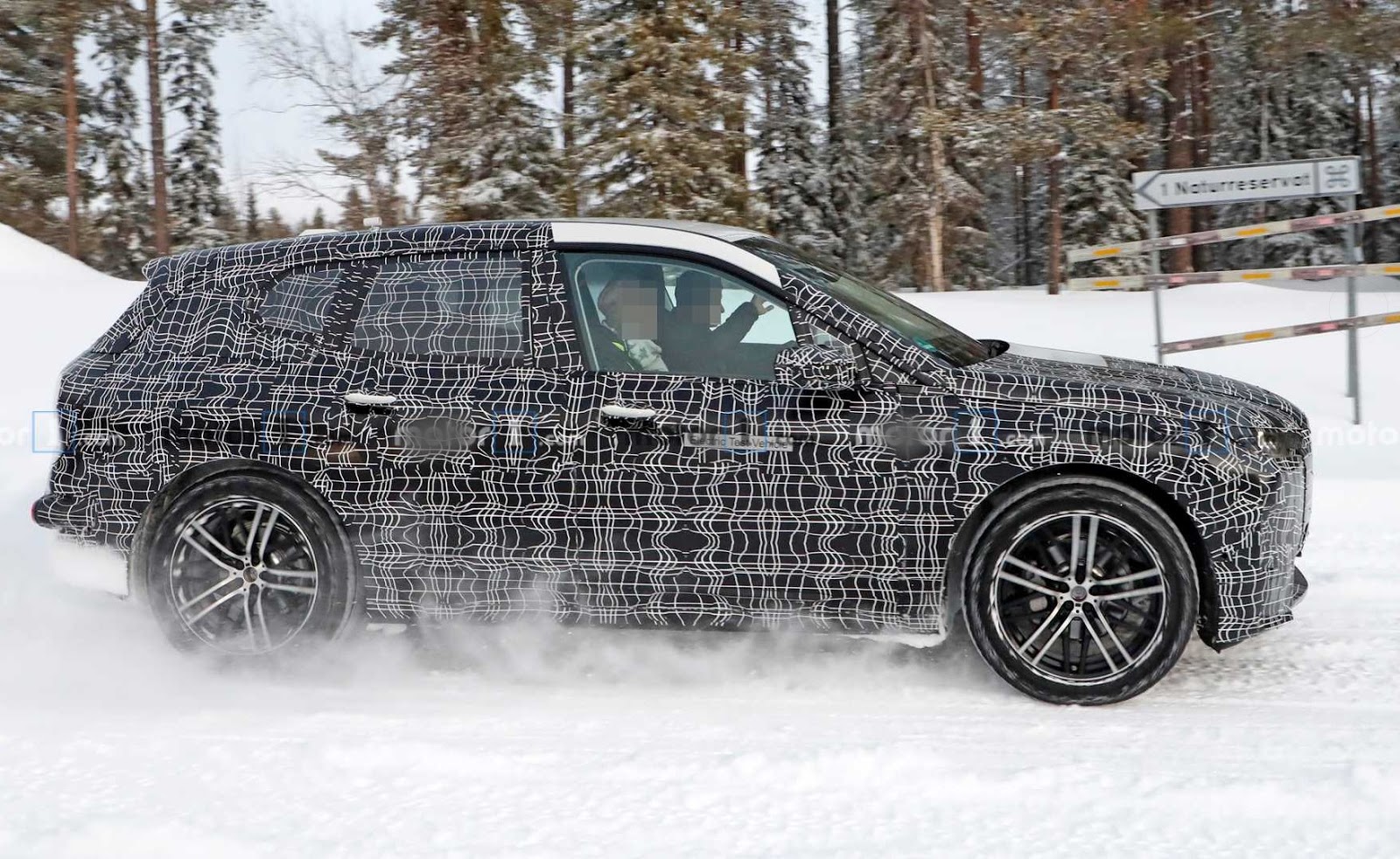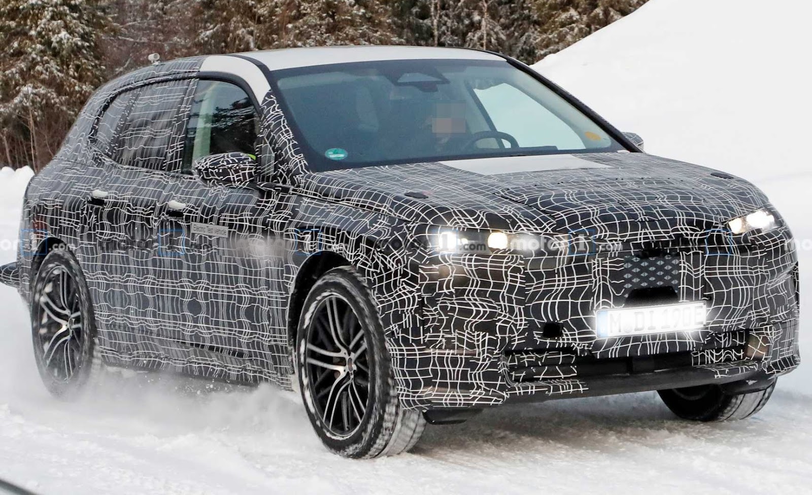 Somente os faróis dão uma ideia de sua forma, estreitos como os novos modelos da marca. A superfície envidraçada é mais visível, com um pequeno vidro fixo no pilar traseiro, o que indica que será oferecido somente com cinco lugares e com um comprimento menor que o X5. Inclusive foram dissimuladas as maçanetas das portas na camuflagem, que serão escamoteáveis como no i4 e emergentes eletricamente.