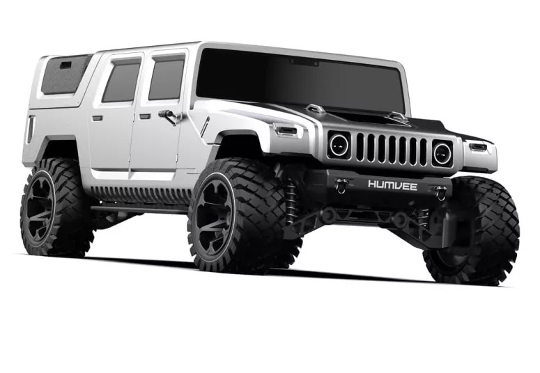 A grelha dianteira está diferente tal como os faróis com tecnologia recente, mas mantendo o aspeto geral do Hummer. O capô é em concha e faz de guarda lamas.